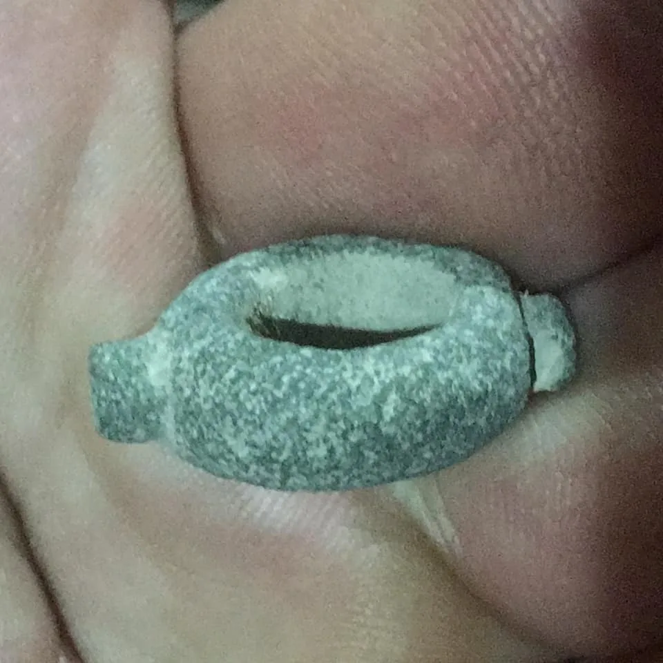 İşte Cumartesi günü Anfibio dedektörle bulduğum her şey bu. Bir de bir sürü düğme falan var. Gerçekten harika bir kazı günü geçirdim. Şu halka şeklindeki şeyin ne olduğunu merak ediyorum. El yapımı bronz bir parça, yani eski olmalı.