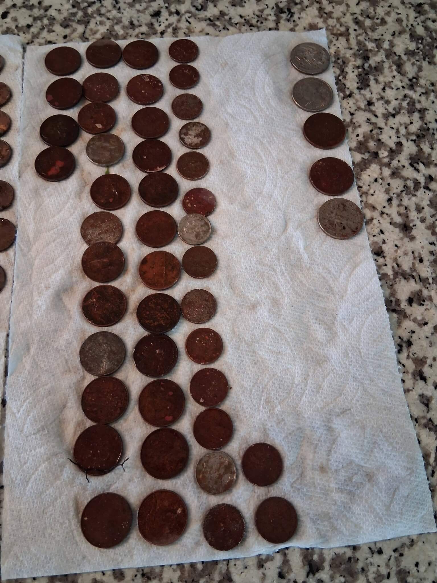 Bugün Nokta The Legend dedektörle 3 saatlik bir arama yaptık. Sonuç olarak 3 yüzük, çeşitli mücevherler, 1 jeton ve 1 buğday penisi bulduk. Ayrıca 1958D 5 çeyrek, 16 on sent, 28 beş sent, 82 peni ve çeşitli metaller de bulduk.