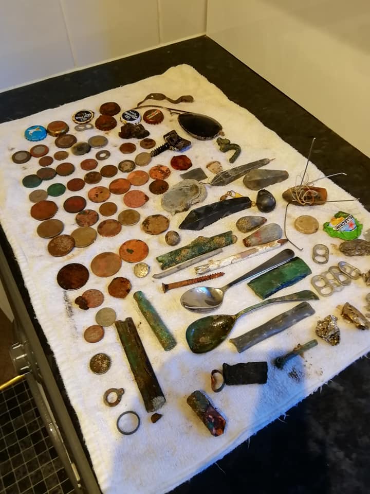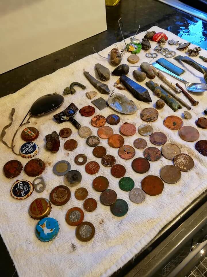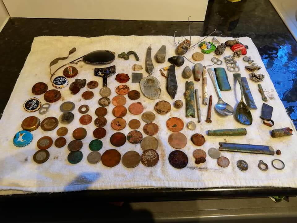 Dün geceki gece vardiyasının sonuçları: Saat 8’de su altında kaldığı için normal arama alanına giremediğinizde, uzun bir gece olacağını anlarsınız. Kuru alanda bir saat geçirdim ama çeşitli cihazlarla her yeri didik didik aradım; yine de standart bobinle asla bulamayacağım birkaç derin parça yakaladım. Kruzer için yeni Nel Tornado bobini kullandım, tek kelimeyle Vay canına. Farklı bir makine. Hoşça kal stok bobin. Aldığım derinlikte CTX’i salladığımı sanıyordum. 3 kepçe derinlikte pound coinler. 15 inç derinlikte eski penny’ler, saçma derinliklerde balıkçılık ağırlıkları ama yine de daha küçük derin hedeflerde hassasiyet veriyor ve hala yüksek kazançta çalışıyor. Küçük kaplamalı ayak parmağı yüzüğü, bulduğum en değerli şeydi. 4 ton ayarımı 14k’da yaklaşık 92 kazançta çalıştırıyorum. Hedeflere kadar harika I.d. kararlılığı, yaklaşık 10“ daha derin hedefler biraz belirsiz, ”kurşunu geri almak harika çünkü stok bobin ıslakta bunu sevmiyor. Hedefi tam olarak belirleme konusunda endişeliydim ama wiggle yöntemini kullanarak hemen hemen her hedefi tam olarak buldum.