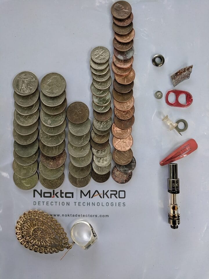 Dün öğleden sonra plajda birkaç saat geçirdim. Güzel bir Sterling yüzük, birkaç kaplama metal parça ve gerçekten hoş bir kırmızı teneke kutu kapağı buldum. Şu anda üreticinin iade işlemleri hakkında bilgi vermek üzere beni aramasını bekliyorum.