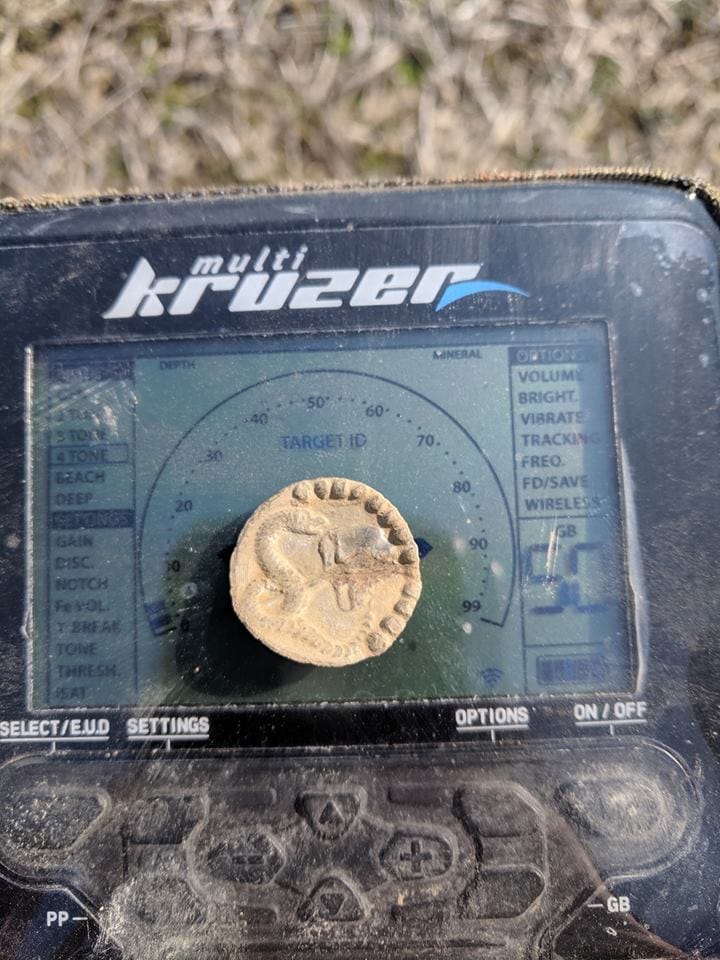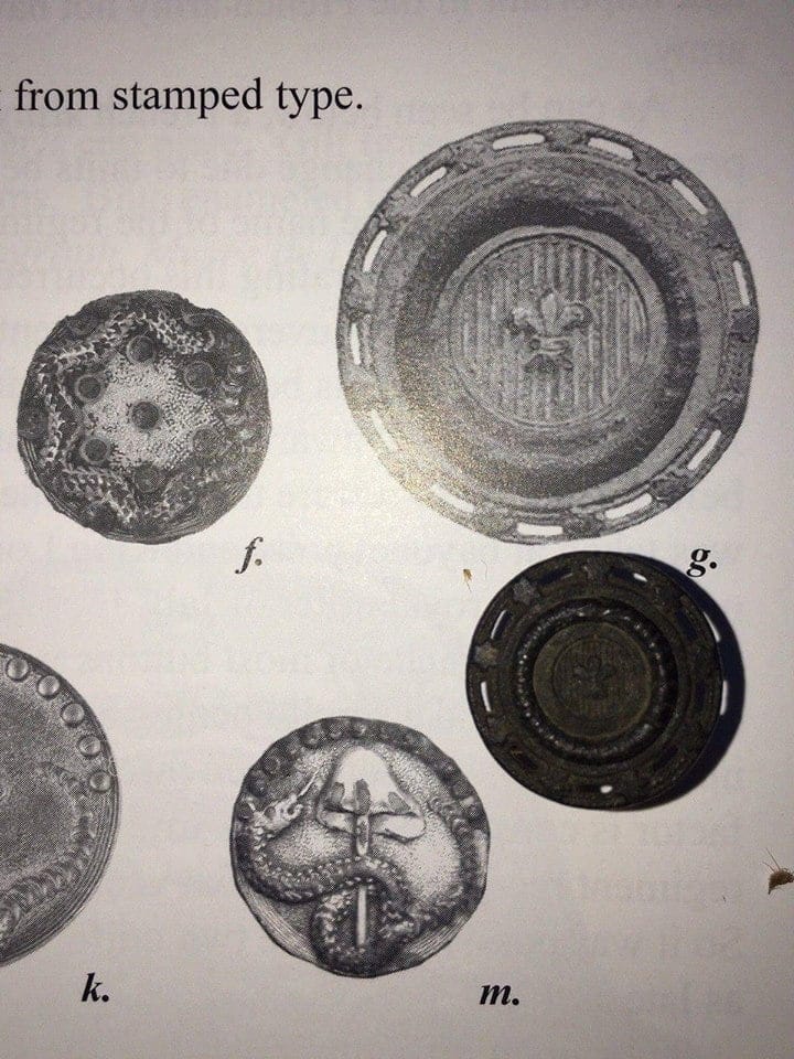 Bu şık 17. yüzyıl düğmesini tesadüfen buldum. Direğin üzerinde, üzerinde 13 yıldız bulunan sarmal bir çıngıraklı yılan bulunan özgürlük şapkası.