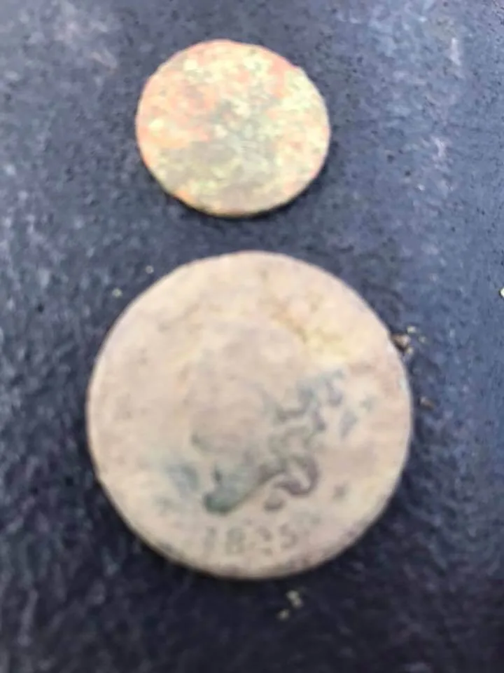 İlk olarak, 1825 tarihli büyük bir cent bulduk. Ardından 1958 ve 1934 tarihli iki peni keşfettim. Bu paralar, geçmişten gelen birer zaman kapsülü gibiydi. Ayrıca modern mermiler, eski kağıttan yapılmış pompalı tüfek mermileri ve düz bir düğme de bulduk.