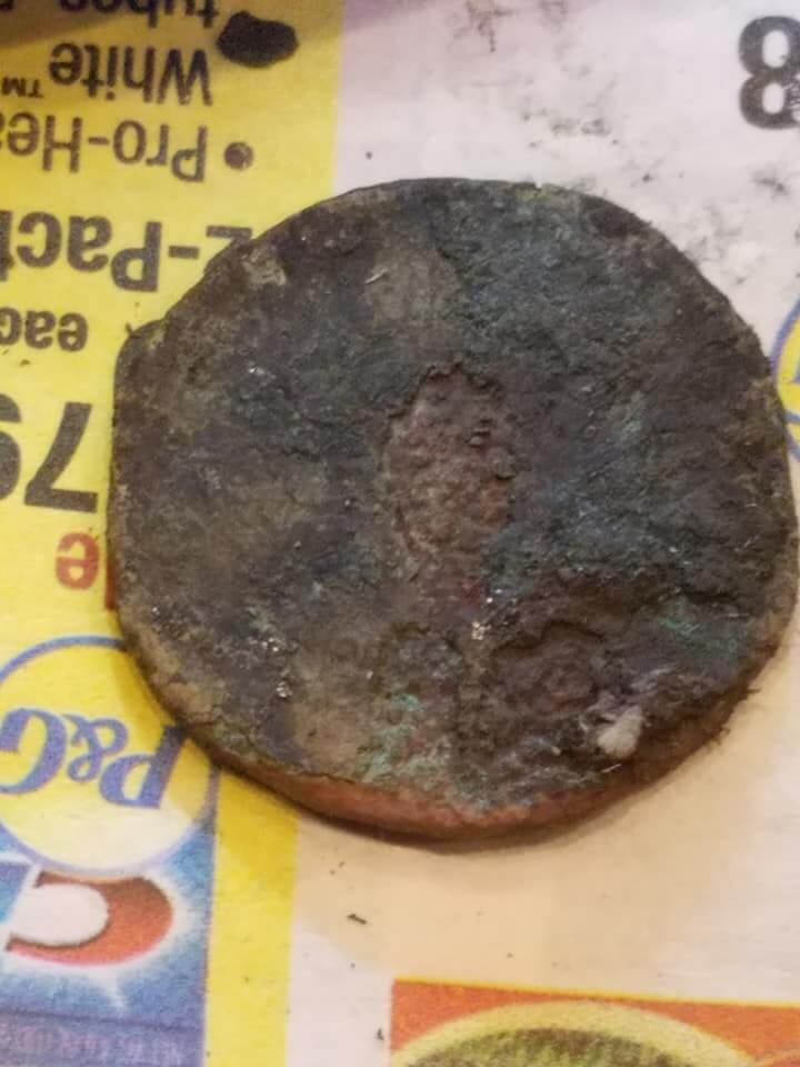 Eski şeyler aramaya çıktık ve neredeyse eksiksiz ilk cep saatimi buldum. Aşağı inip geri döndüm ve başka bir İtalyan madeni parası buldum ama arkasını okuyamıyorum.