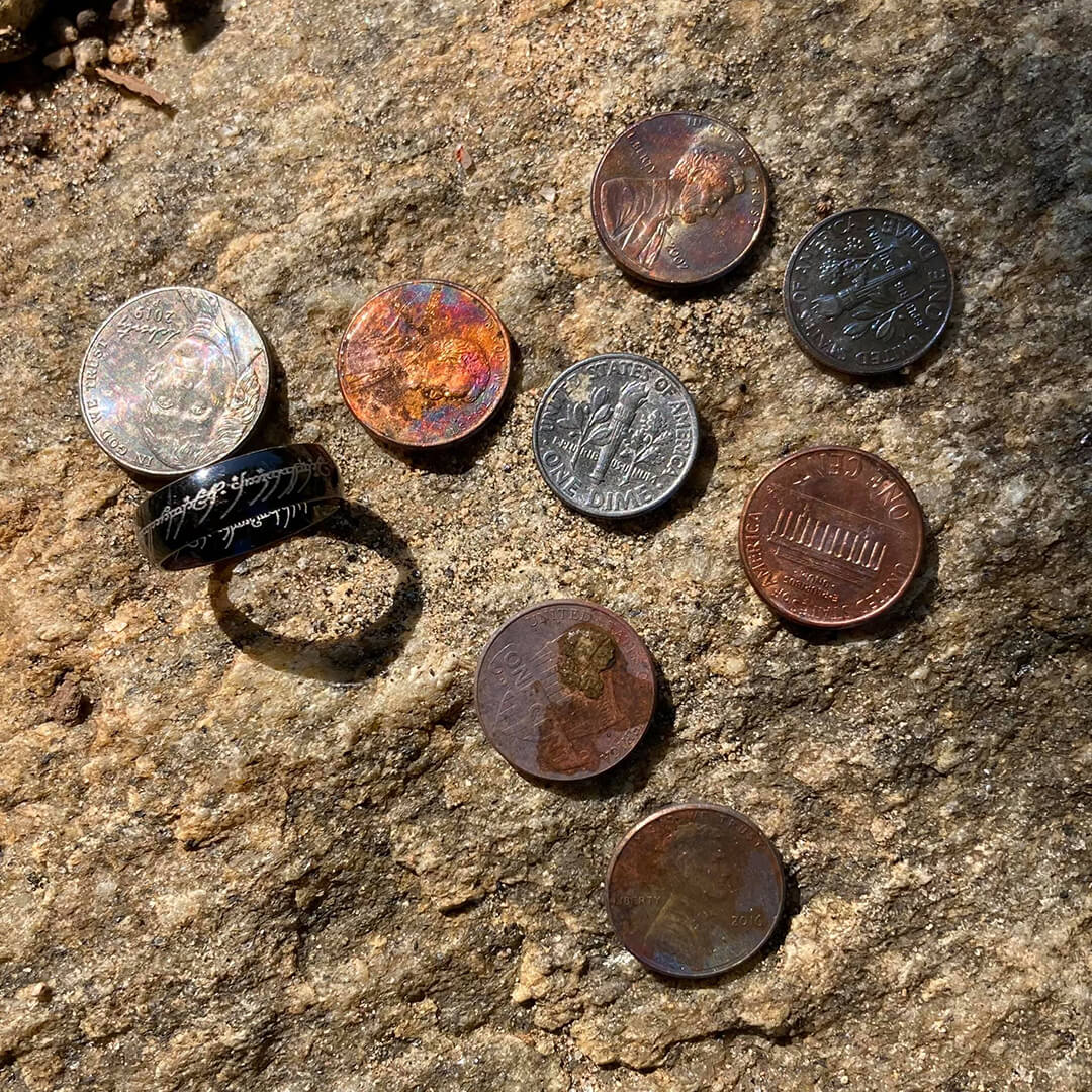 Bugün Nokta Simplex dedektörümle saatlerce eğlendim ve gölden tonlarca eğlence çıkardım. İşte gölde bulduklarım, gümüş küpe, madeni paralar ve güzel bir yüzük.