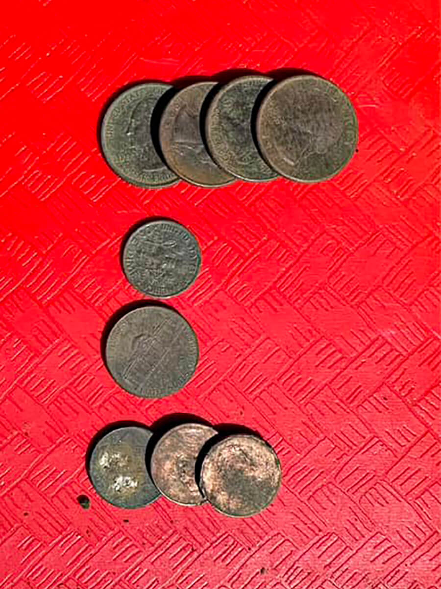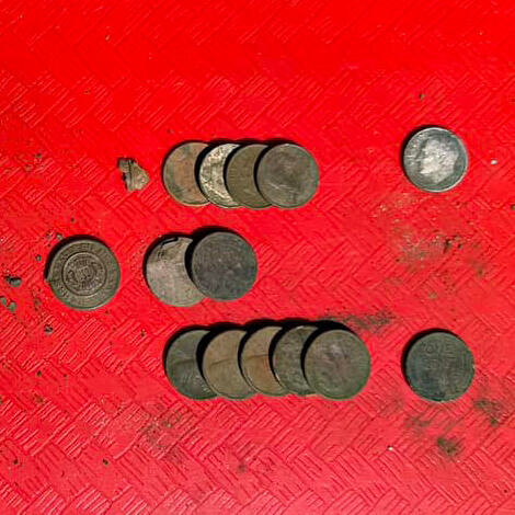 The Legend dedektörle 2 saatlik sabah avı… The Legend yine hayal kırıklığına uğratmadı, yerel bir parkta LG24’ü bobiniyle kullandık. Oğlum 1,18 dolarlık bir kaplama buldu ve ben bir gümüş on sent (1946) ve buğday senti (1951 D) buldum.