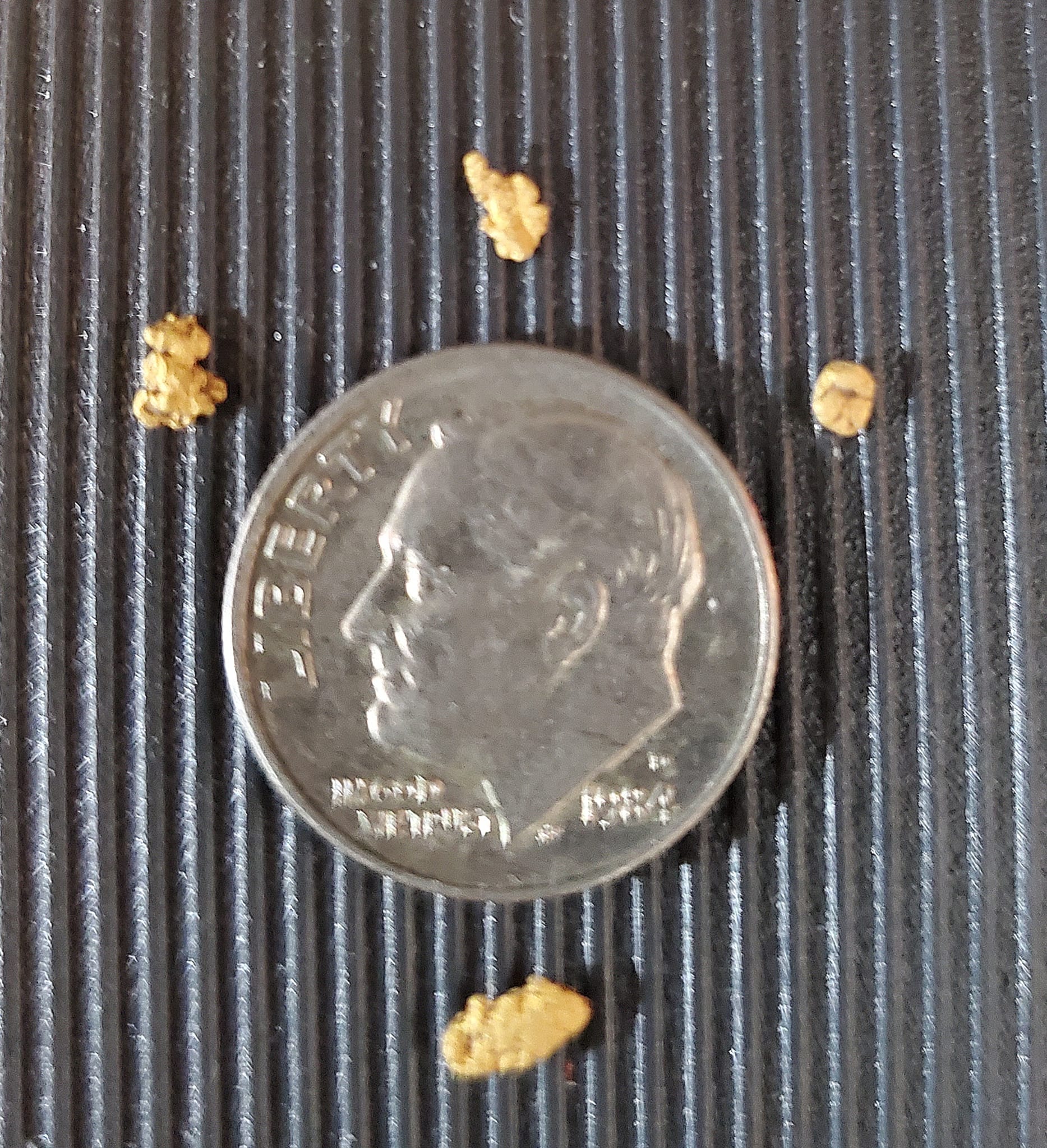 Bu fotoğraflar dün v1.17 yazılım yüklü ve 6″ bobin takılı Nokta The Legend dedektörle bulduğum birkaç küçük altın parçasına ait. Videoda on sentlik madeni paranın altında bir tane ve ölçek için on sentlik madeni paranın olduğu bir fotoğrafla birlikte toplam dört tane buldum. The Legend, onu bu şekilde kullanmak isteyenler için harika bir altın dedektörü. Tebrikler Nokta!